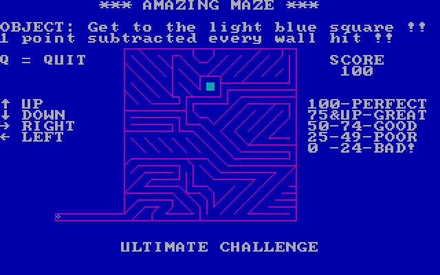 Amazing Maze Donovan Foster, 1983 Play now Bookmark Download Amazing Maze is a Freeware Puzzle game published by Donovan Foster in 1983. Category: Puzzle License: Freeware Rating: 2 ratings Language: English Share this game Facebook Twitter Reddit Game controls - Left - Right - Up - Down Rating & comments Based on 2 ratings Rate now