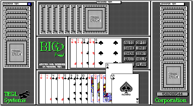 The game of BIG2 originated in Hong Kong, where gambling is a way of life. BIG2 is now played by almost 99% of the oriental population and ranks as second to Mahjong in social entertainment. Although simple to learn, when played in the hands of a master, Big2 has the avant-garde of chess and the finesse of bridge. The object of this game is to be the first player to play all the cards in their hand while attempting to maximize the number of cards remaining in the other players hands.