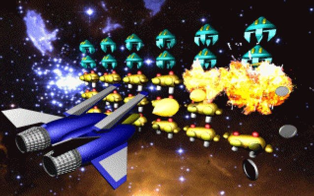 Cash Invaders is a shoot’em up for MS-DOS based on Space Invaders. It has 100 levels, 9 bonus levels, raytraced graphics and power-ups.