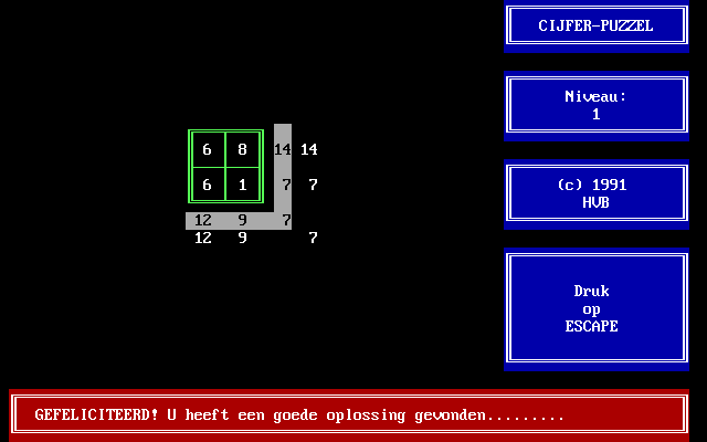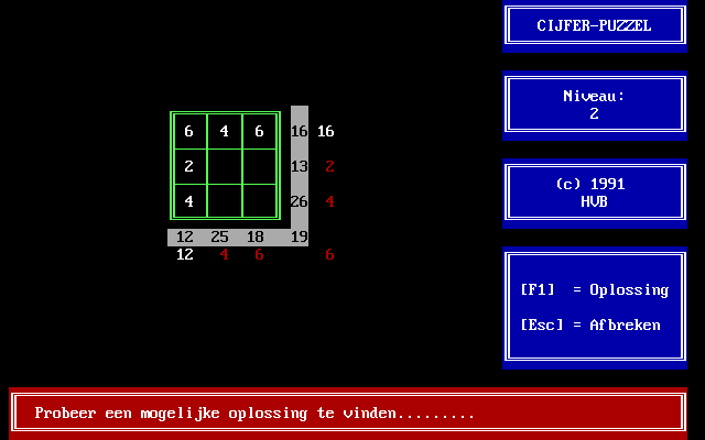 Cijfer-Puzzel HVB Software, 1991 Play now Bookmark Download Cijfer-Puzzel is a Freeware Puzzle game published by HVB Software in 1991. Category: Puzzle License: Freeware Rating: rate now Language: Dutch Share this game Facebook Twitter Reddit Game controls NumPad 8 - Move upNumPad 2 - Move downNumPad 4 - Move leftNumPad 6 - Move right1 - 9 - Enter number Rating & comments No ratings yet Rate now