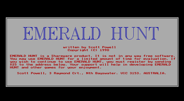 Emerald Hunt is a Shareware Classic game published by Scott Powell in 1990.