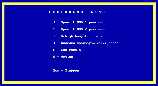 Lingo Unknown, 1991 Play now Bookmark Download Lingo is a Freeware Puzzle game published by Unknown in 1991. Category: Puzzle License: Freeware Rating: rate now Language: Dutch Share this game Facebook Twitter Reddit Rating & comments No ratings yet Rate now