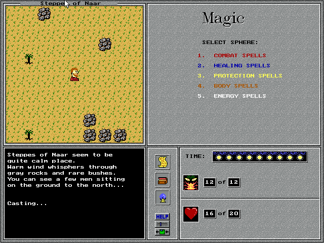 The Black God is the first part of Lords of Doom fantasy role playing saga. The purpose of the game is to lead alone hero to defeat powerful evil demi-god awaked by the Great Comet. You will find the large playing area, lots of interactive dialogues with NPCs, magical book with over sixty pages of darkest knowledge, plenty of monsters, many items and powerful spells. Game features VGA high-resolution (640x480) graphics, intuitive contol interface (mouse or keyboard) and build in HELP. This game was designed to give the player maximum level of realism in typical situations: (for example when hero finds the locked door, he need not to seek a key, he may always try to pick the lock or break through the door - it will take some time, of course) etc. There are combat and healing spells available for the character, but there are aslo spells which allow to fly, resist fire, poison and enemy’s blows, and even move through stone walls.