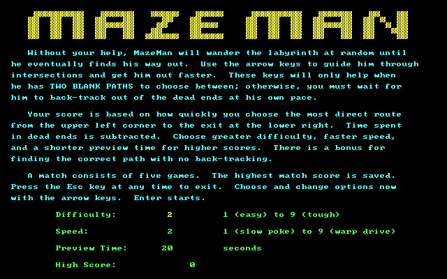 MazeMan John Shramko, 1993 Play now Bookmark Download MazeMan is a Shareware Puzzle game published by John Shramko in 1993. Category: Puzzle License: Shareware Rating: rate now Language: English Share this game Facebook Twitter Reddit Game controls - Move left - Move right - Move up - Move down Rating & comments No ratings yet Rate now