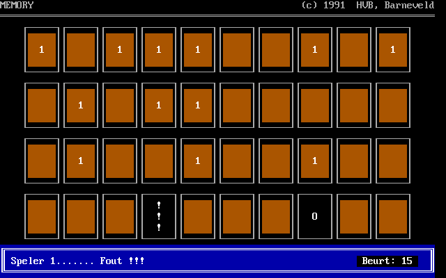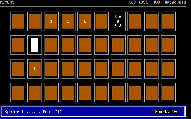 Memory HVB Software, 1991 Play now Bookmark Download Memory is a Freeware Board games game published by HVB Software in 1991. Category: Board games License: Freeware Rating: rate now Language: Dutch Share this game Facebook Twitter Reddit Game controls NumPad 8 - Move upNumPad 2 - Move downNumPad 4 - Move leftNumPad 6 - Move rightEnter - Select Rating & comments No ratings yet Rate now