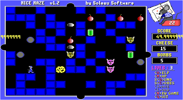 Mice Maze Soleau Software, 1996 Play now Bookmark Download The objective of Mice Maze is to find and rescue your friend the Red Mouse, trapped somewhere in this puzzle maze. Category: Adventure License: Shareware Rating: rate now Language: English Share this game Facebook Twitter Reddit Game controls - Left - Right - Up - Down Rating & comments No ratings yet Rate now