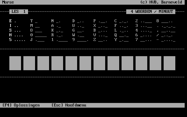 Morse HVB Software, 1991 Play now Bookmark Download Morse is a Freeware Educational game published by HVB Software in 1991. Category: Educational License: Freeware Rating: rate now Language: Dutch Share this game Facebook Twitter Reddit Game controls Use your keyboard to play Morse. Rating & comments No ratings yet Rate now
