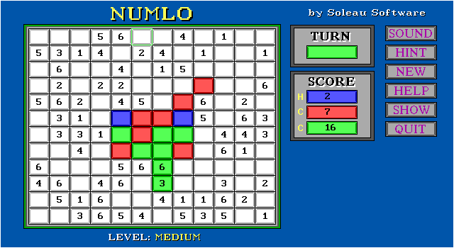 The object of Numlo is to capture squares on the board, so that the square values and the number of captured squares will give you the highest point total at the end of the game. The rules are quite simple, it takes a minute to learn and with practice you’ll see yourself improving steadily.