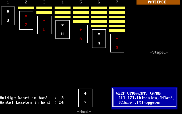 Patience HVB Software, 1990 Play now Bookmark Download Patience is a Freeware Card games game published by HVB Software in 1990. Category: Card games License: Freeware Rating: rate now Language: Dutch Share this game Facebook Twitter Reddit Game controls Use your keyboard to play Patience. Rating & comments No ratings yet Rate now