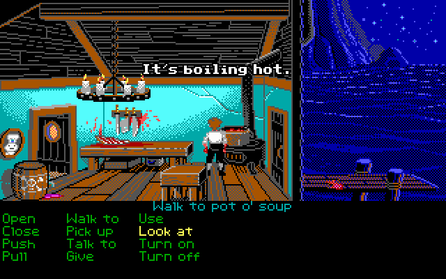 The Secret of Monkey Island is a comedy set during the “golden age” of piracy in the Caribbean. The game’s twisty plot leads our hero, fresh from the Old World, on a hilarious, complex, swash-buckling search for the fabled secret of Monkey Island. Like other Lucasfilm Games graphic adventures, The Secret of Monkey Island features cinematic storytelling, high resolution graphics, and a unique point ‘n click interface.