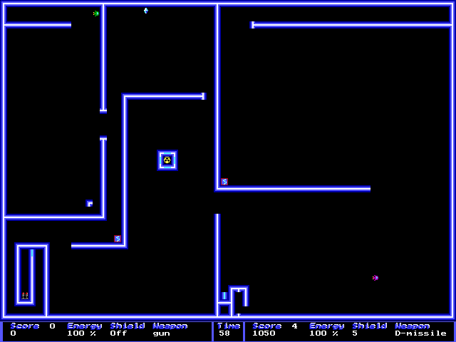 The purpose of Space Maze is to get all 10 diamonds in three minutes, and kill the opponent. This will drop the opponents score down to zero, with no shield and just the standard gun.