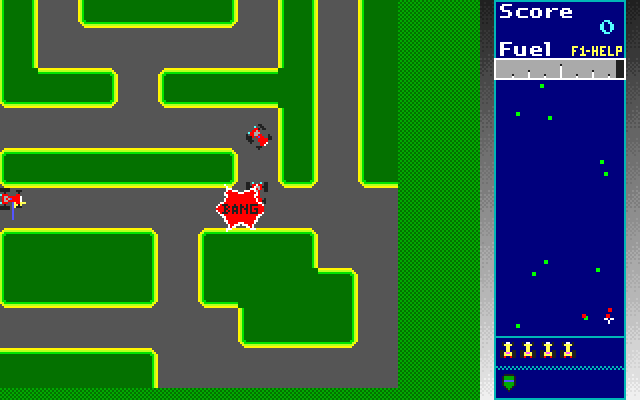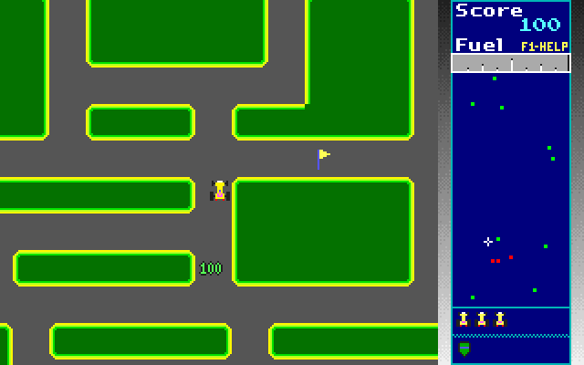I once own a Windows 98 PC when I was maybe around kindergarten or early elementary school days. I realize I think in that computer has tons of cool Windows/DOS games. Prince of Persia 2, Jazz Jackrabbit 2, Raptor, Mortal Kombat, maybe some more. And one particular game. A top-down view car games with green background where you collect some items while avoiding another car. It has power ups like gas, speed, coin. I don't know what the game title was. Well maybe I do, but I was a very young kid back then. A 5 or 6 years old me. Up until now I don't know clearly what the game is. Now its a graduate student me, in my 24 years old. I have almost figured out my old time Windows/DOS games in recent period, EXCEPT THIS GAME. I just finished my homework at midnight and my retro mind said "Hey, you remember that game?". And here I am, 3:48 AM, googling "top-down view old racing game dos". I've been searching all corner but, no, not exactly it. The closest answer that you might found is Namco's Rally-X. Well to be honest, it has the same graphic. SAME CONCEPT for crying out loud. But, its just not it. I know, Its not that game. I'm almost given up to Rally-X as the final answer, but no, that retro brain keep saying "No, idiot. Does it has the fuel power up? Rally-X doesn't have that. And it doesn't has that stupid song. No sleep until you found it." So when I found out I couldn't do it in Google, maybe Youtube might help. So yeah, my keywords turn into "Rally-X clones pc