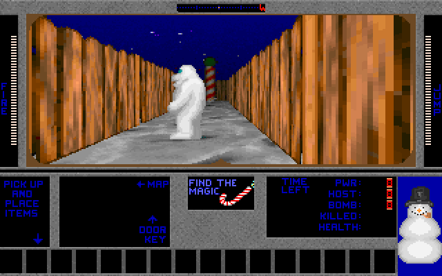 Terror is Christmas Town is a 3-D game in which the player must find a captured elf who has been frozen by the evil Polar bear king. You must survive the journey past the roaming bears and enter the castle holding the frozen elf.