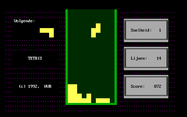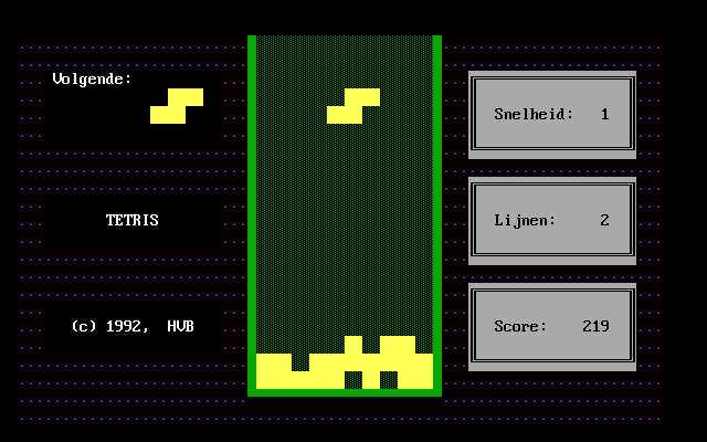 Tetris HVB Software, 1992 Play now Bookmark Download Tetris is a Freeware Classic game published by HVB Software in 1992. Category: Classic License: Freeware Rating: rate now Language: Dutch Share this game Facebook Twitter Reddit Game controls NumPad 4 - Move leftNumPad 6 - Move rightNumPad 2 - DropSpace - Rotate Rating & comments No ratings yet Rate now