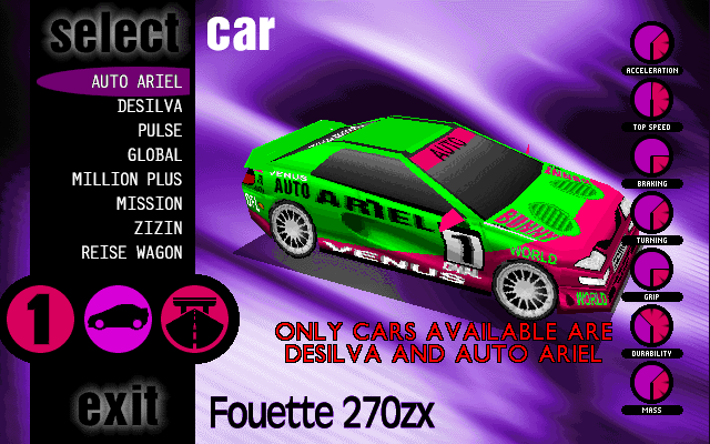 Whiplash is a Playable Demo Racing game published by Interplay in 1996.