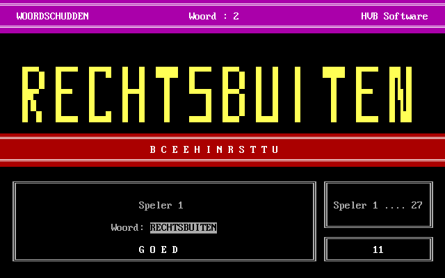 Woordschudden is a Freeware Educational game published by HVB Software in 1990.